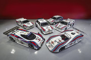 Do wzięcia kolekcja sześciu wyścigowych i rajdowych Lancii w kolorach Martini: LC1, LC2, Beta Montecarlo Turbo, Delta S4, 037 oraz Delta Integrale.