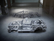 Mercedes-AMG pokazał platformę dla nowego SL: 270 kilogramów, elementy z aluminium, wytrzymałość na skręcanie w porównaniu do AMG GT Roadster większa o 18%, sztywność wzdłużna większa o 40%, sztywność poprzeczna większa o 50%.